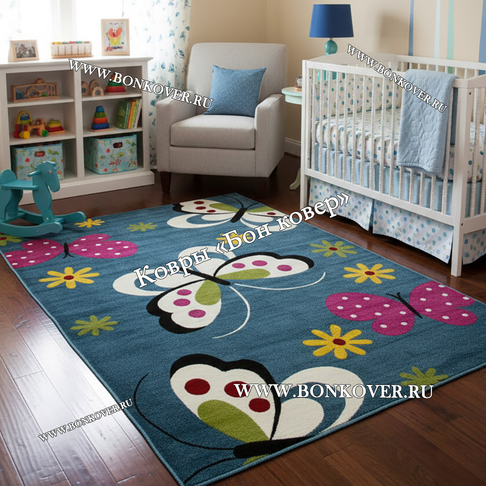 Детский Ковер с Бабочками Синий Дизайн 30008 станет великолепным преображением вашей комнаты, подчеркивая высокий статус семьи владельца.
