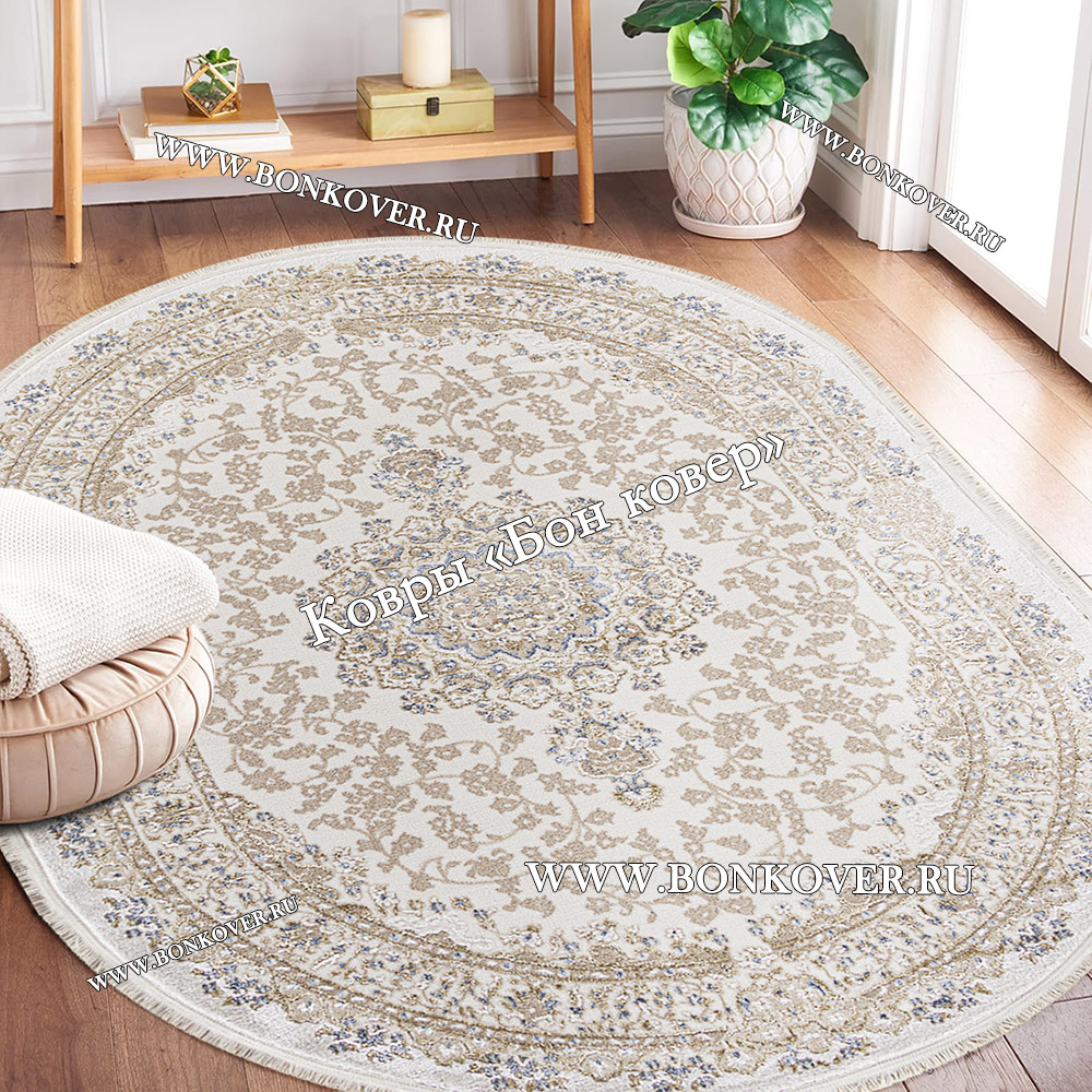 Ковер Для гостиной Арт 29888 Турция Овал станет превосходным дополнением интерьера, оформленного в современном или классическом стиле. Мягкое, но прочное, ковровое покрытие обеспечивает тепло- и шумоизоляцию, отличается длительным периодом эксплуатации, пожаробезопасностью, экологичностью и высокой износостойкостью, является отличной защитой от повышенной влажности в помещении и утеплителем для холодного пола. Благодаря качеству материалов, ковер не деформируется, сохраняет форму под тяжестью предметов мебели. За его поверхностью легко ухаживать.