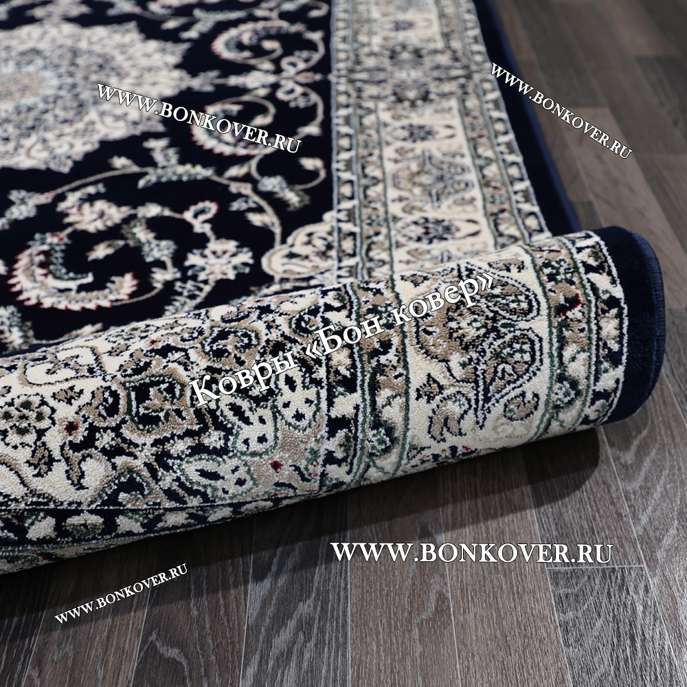 Шикарный Ковер Для Гостиной Дизайн 30837 Темно-Синий наполняет интерьер жилого пространства теплом и уютом, гармонично сочетает в себе изящество и красоту. Он изготовлен из экологически чистого сырья, комфортный и долговечный.