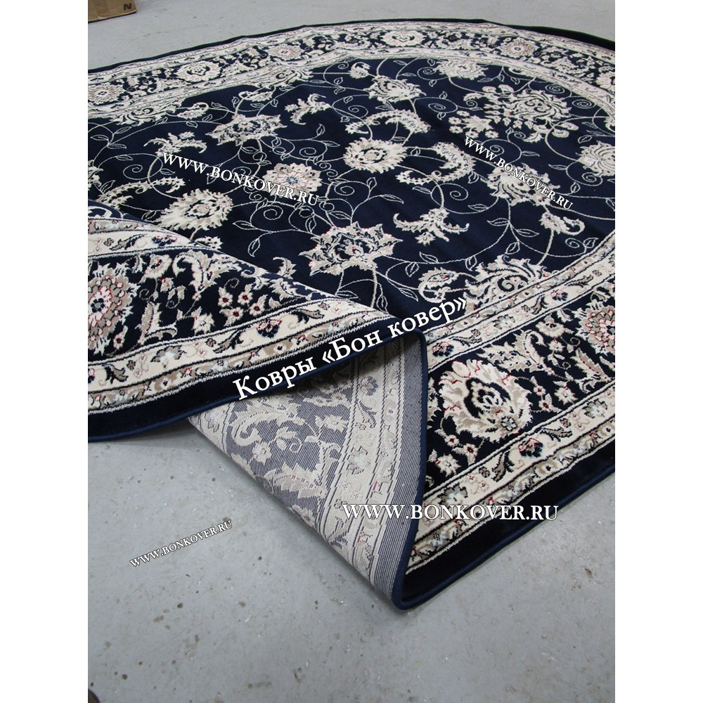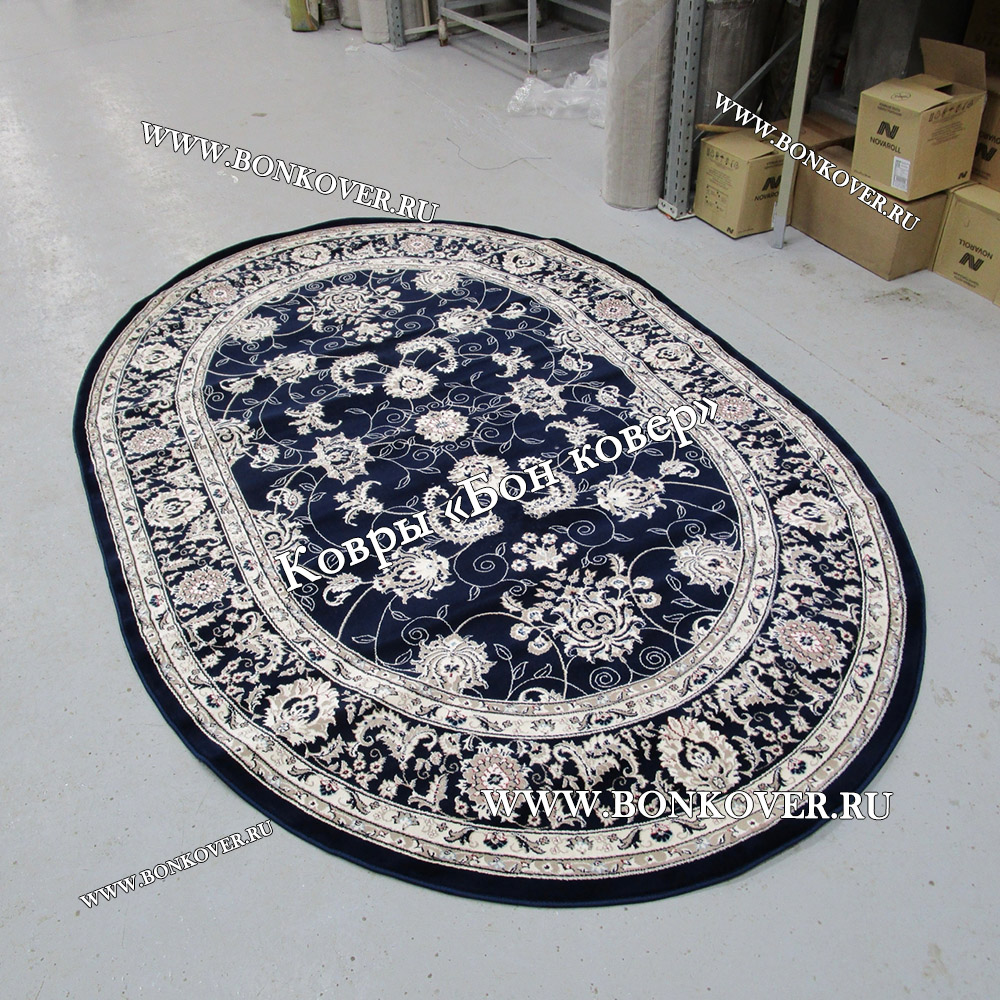 Изящный Овальный Ковер Для Гостиной Дизайн 30596 Темно-Синий наполняет интерьер квартиры теплом и уютом, гармонично сочетает в себе изящество и стиль. Он соткан из высококачественного сырья, прочный и долговечный.